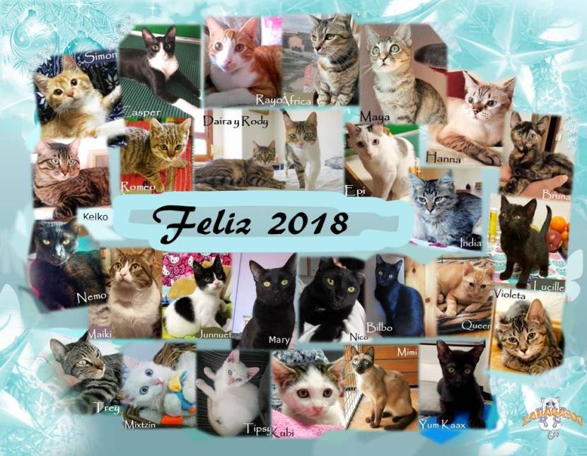 Los gaticos que tuvieron la fortuna de encontrar un hogar en este año que se acaba, se han puesto así de guapos para desearos ¡Feliz 2018!