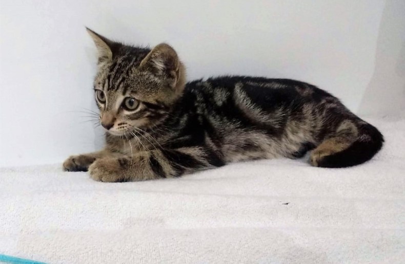Los últimos que hemos acogido son Yoshy, cachorro atigrado macho muy delgadito y así de precioso y dulce: