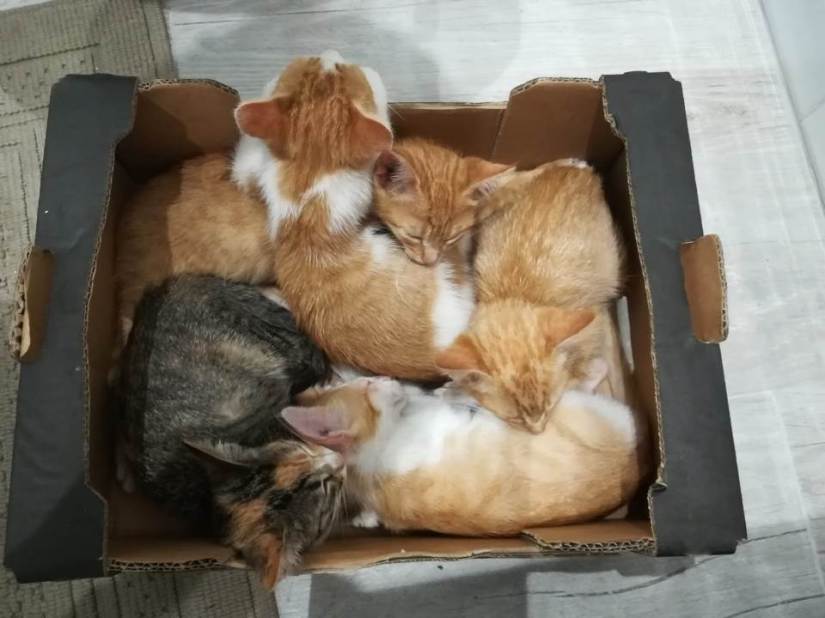 … una gata adulta llamada Danna (muyyy buena). Un cachorrito de apenas dos meses, atigrado, que se quedó con la cabecita atrapada entre los barrotes de unas jaulas de una empresa (menos mal que los trabajadores pudieron liberarlo!). Un cachorrín en peligro que unos voluntarios rescataron y se llama Lion. Y cinco hermanitos muy requetebuenos y dulces que aparecieron abandonados y hemos acogido en Zaragatos. Se llaman Trasgu, Moki, Houdini, Gudi y Kitty. Ya veis que estamos a tope!… Según vayan acabando los tratamientos para acabar con los parásitos, catarrillos y demás, los iremos poniendo en adopción.