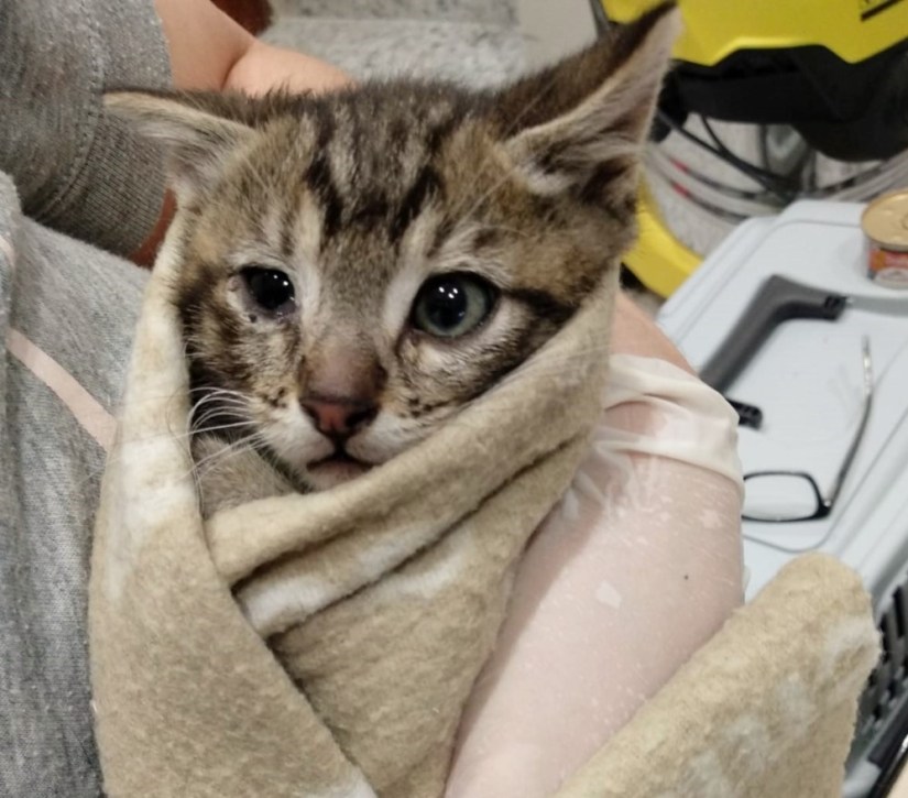 Este pequeñín es Laak. Hace solo unos días que está con nosotros. De momento está ingresado. Qué carita de resignado… Suerte pequeño!