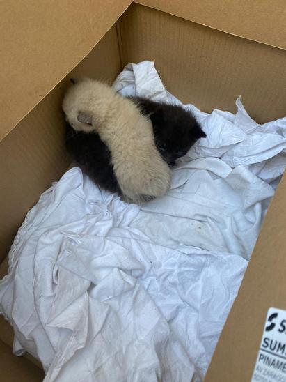 A estos chiquitines los tuvimos que recoger ya que nos comentaron las personas de un taller de coches donde alimentaban a la madre, que apareció atropellada. Ya están algo espabiladicos, tendrán dos semanas y toman muy bien el biberón. Cuando estén listos los pondremos en adopción.