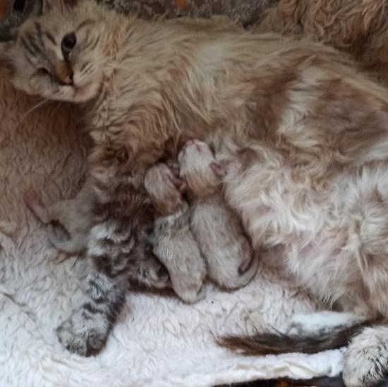 Esta madrugada Eri ha dado a luz. Hemos tenido tres preciosos bebés idénticos a su mami. Nos alegramos por ella y porque la hemos podido sacar de la calle y que diera a luz en buenas condiciones.