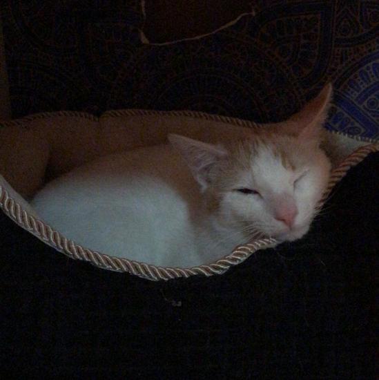 como veis tiene uno de los ojos dañado, os iremos contando a ver como evoluciona. Asi estuvo el primer día que llegó…respirando aliviado en una camita…bienvenido!!