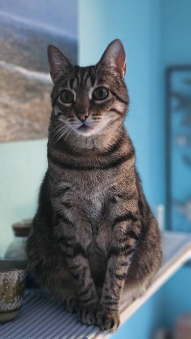 Elliot apareció abandonado en una colonia felina con el collar y todo puesto. Cuando tuvimos hueco nos hicimos cargo de el. En casa es un gatico (bueno, más bien gatazo! es grande y precioso, 5kg.) que no se mete con ningún otro gato, el va a lo suyo. Es bastante tranquilo y le gusta dormir encima de la cama. Tiene su rutina de juegos antes de ir a la cama, le gusta dar patadas al cojín un rato. A veces muerde fuerte cuando lo acaricias, pero es muy sociable con todo el mundo.