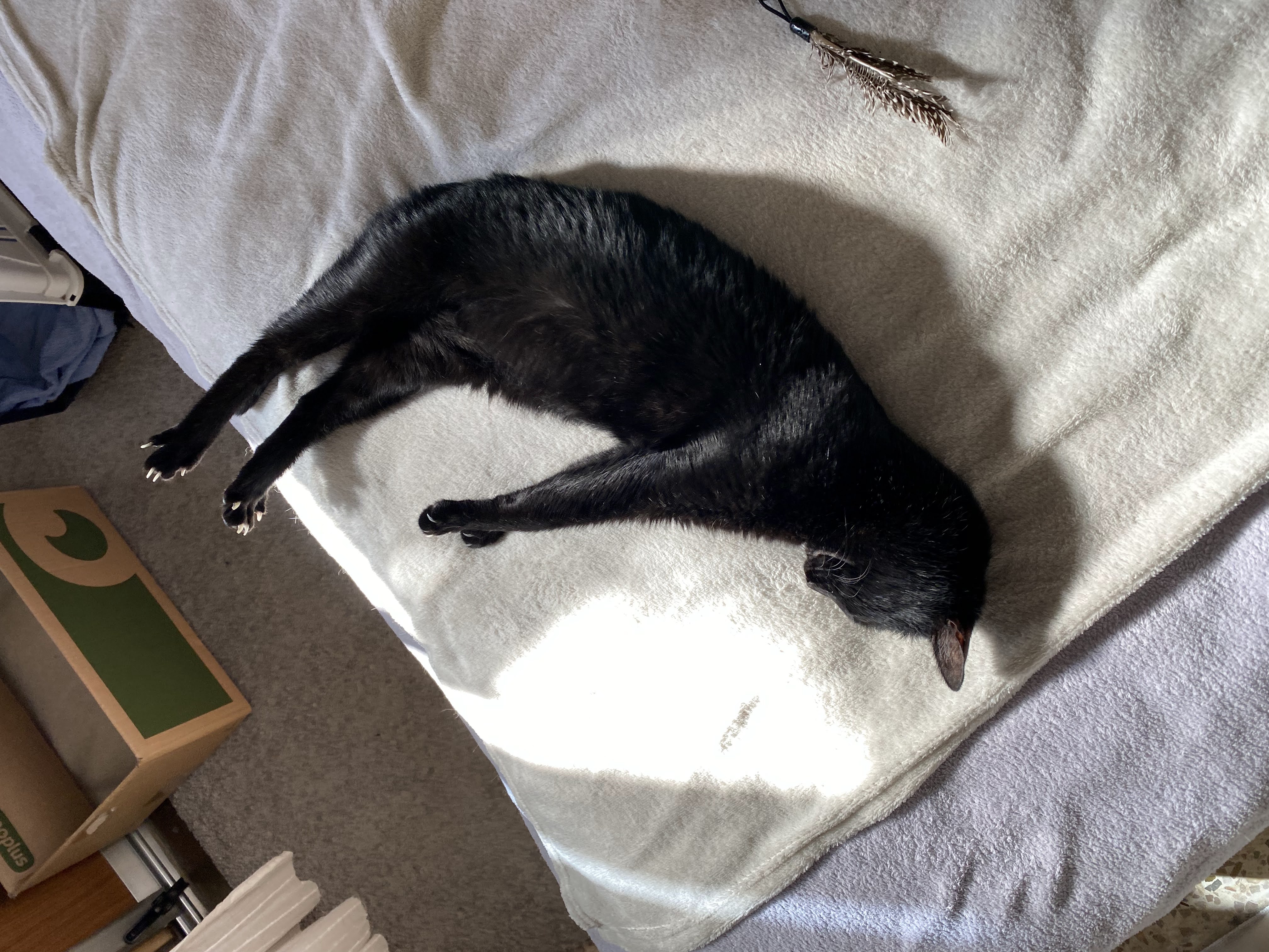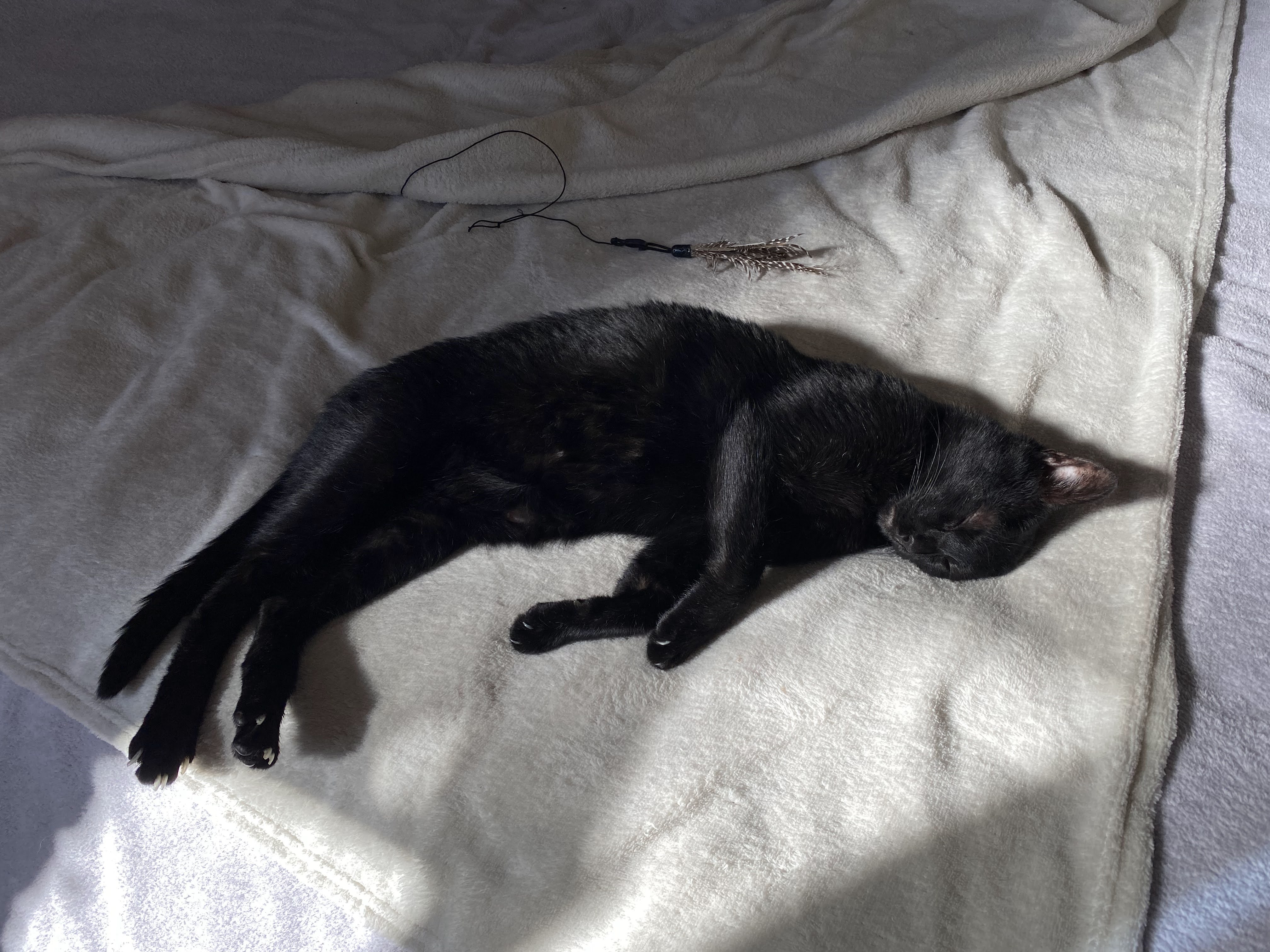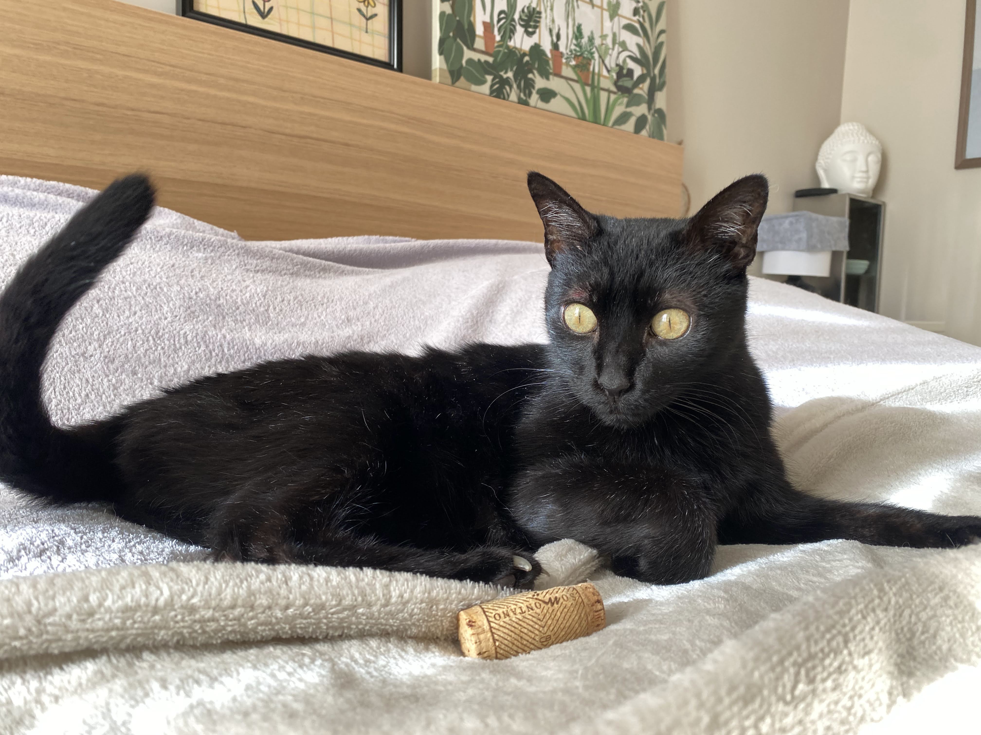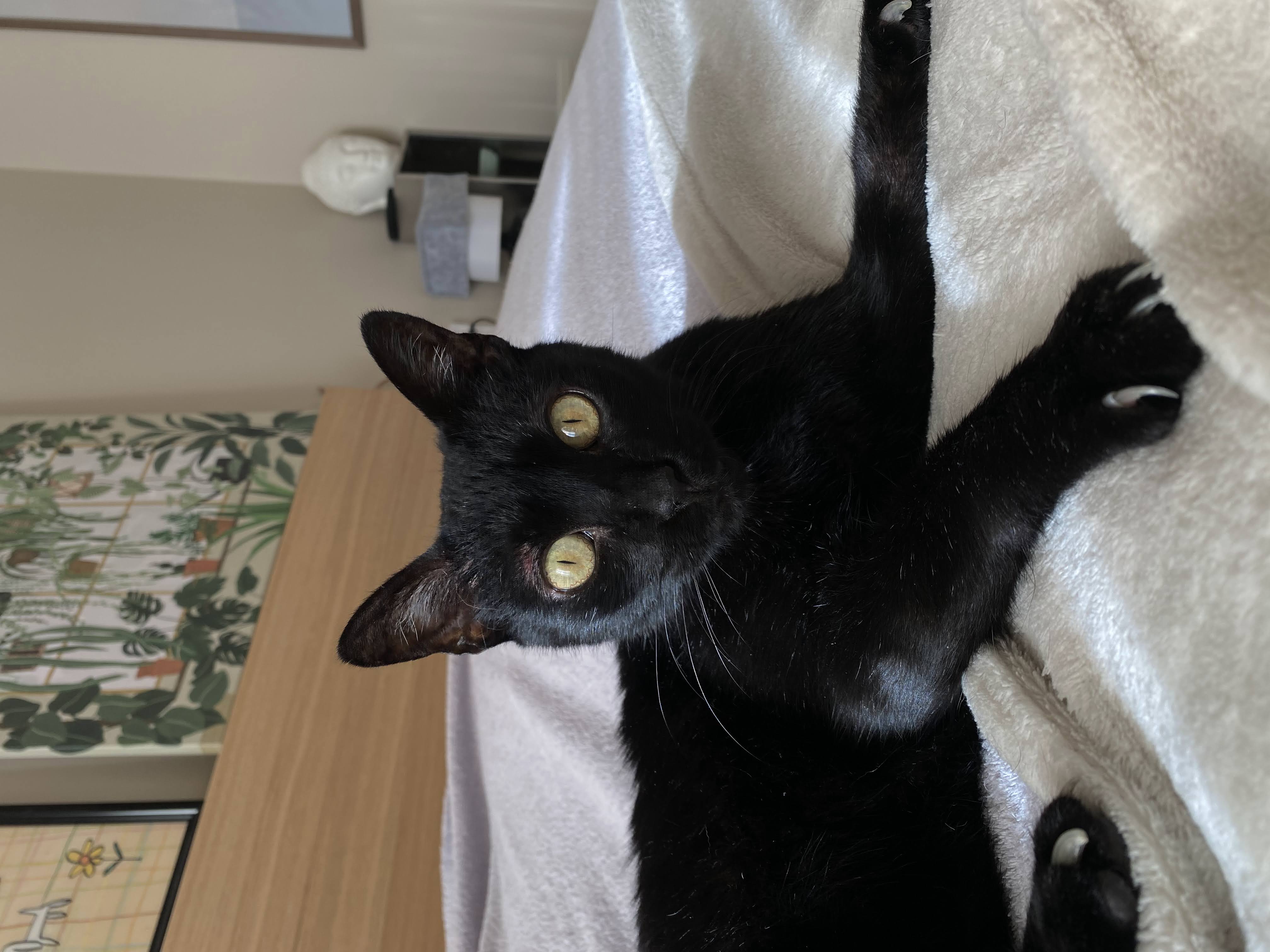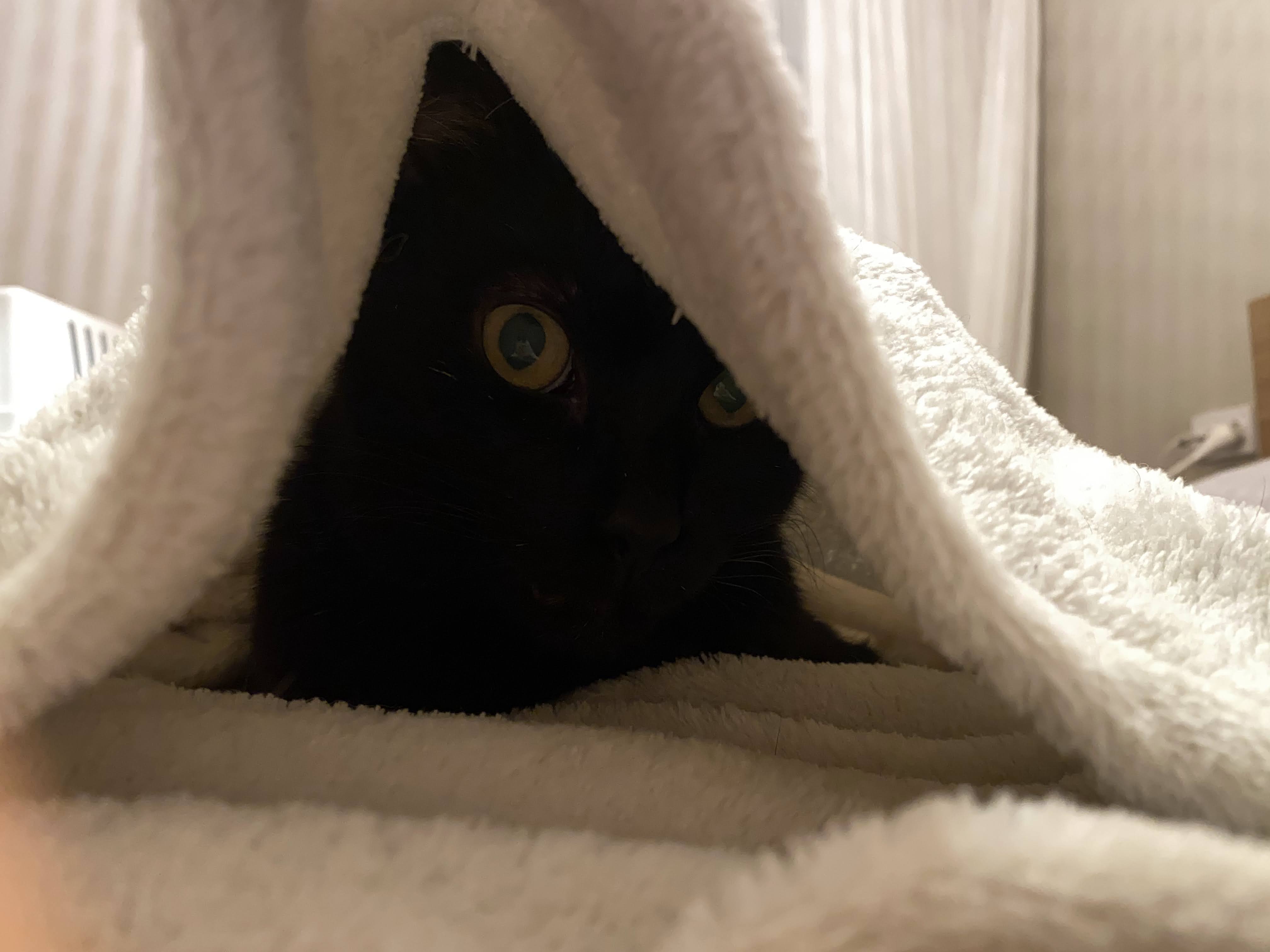 A María la rescatamos en un solar abandonado. Es una gatica algo asustadiza al principio pero muy cariñosa, dulce y buena. Le encanta dormir en un manta en forma de burrito.