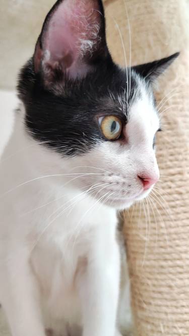 Rocky es un gatito muy cariñoso y sociable. Se lleva bien tanto con humanos como con otros gatos. Le gusta subir a las alturas y jugar con juguetitos pequeños y plumas.