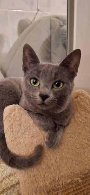 Irina y Anastasia son dos preciosidades azul ruso y azul y blanco. Aún no llegan a los 7 meses y no llegan a los tres kilitos. Son increíblemente dulces, cariñositas y suaves. Cuando cogen confianza, les encanta ponerse encima o al lado, haciendo contacto y ronroneando. Si paras las caricias, Irina te mira sorprendida y te da cabezazos pidiendo más y poniéndote ojitos y Anastasia, si puede, vuelve a subirse encima de las piernas y se hace un ovillo, ronroneando y mirándote con adoración.