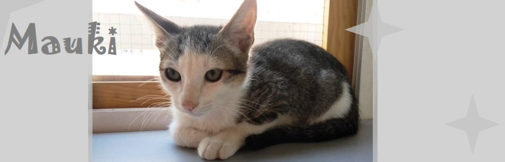 Estos dos cachorritos estaban en una zona en la que corrían mucho peligro de ser atropellados. Su hermanita Daira ya está adoptada. Mauki en un principio es un poco más miedosillo que su hermanita, pero un amorcito también. Le gusta jugar mucho con otros gatos y la compañía humana. Estaría muy bien con algún otro compi gatuno o con familia humana alrededor.