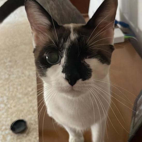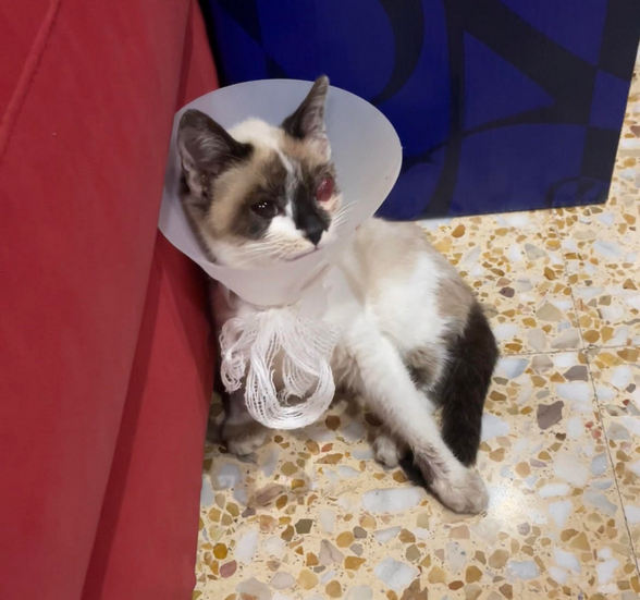 Mochi, recogido por Sara con los ojos completamente deteriorados