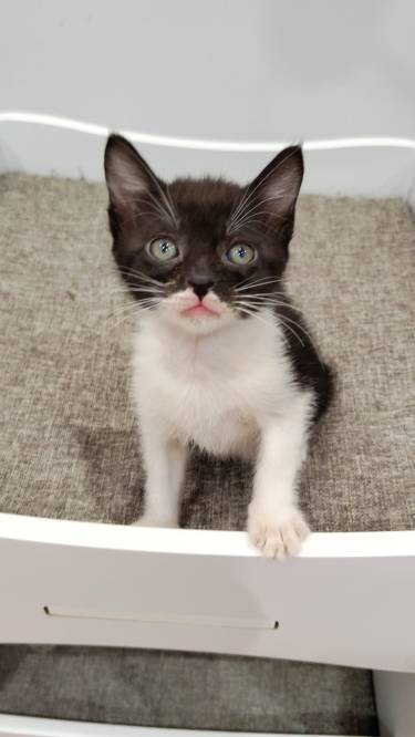 Y aquí os presentamos a Aylen, una superviviente que junto con su hermano Aukan vinieron recién nacidos, solicitando ayuda unas colaboradoras.Ella es más movida que su hermano, nos e cansa y es muy exploradora. Es la primera en subirse a todos sitios sin importar la altura. Es muy comilona y le gusta todo. Le encanta jugar con pelotitas y muñequitos pequeños.Es sociable con humanos y con gatos
