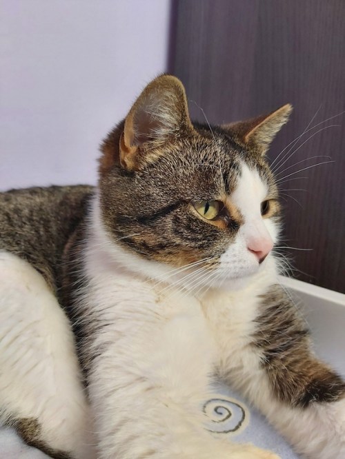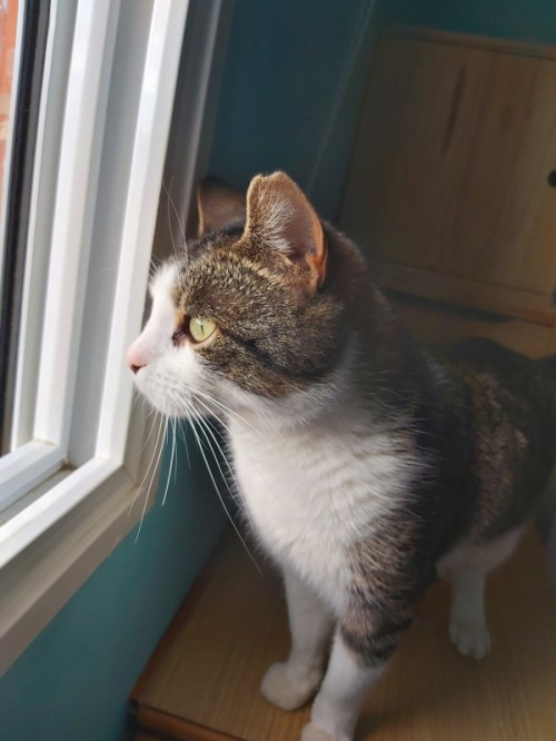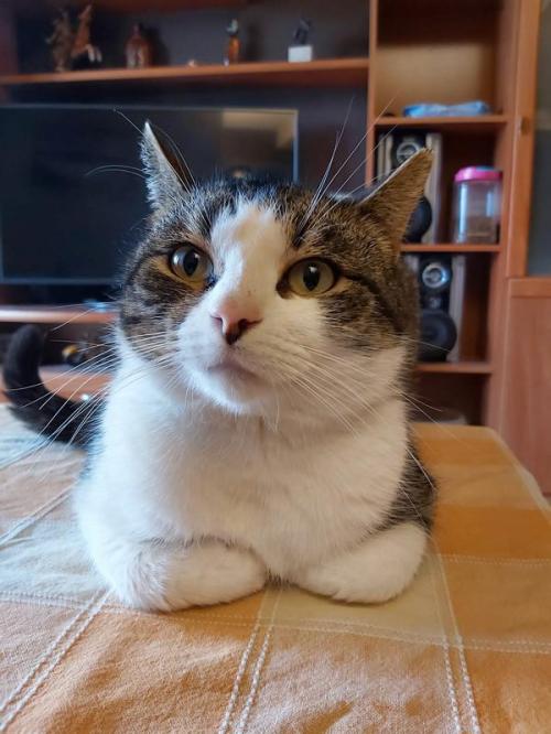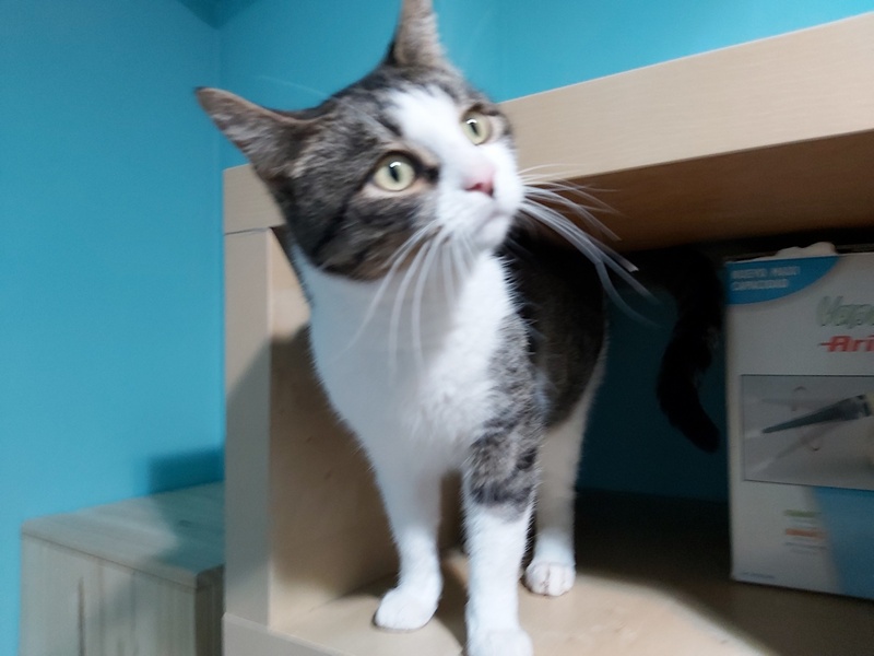 Capi apareció en una colonia felina controlada por el proyecto CES. Al ver que era tan sociable y casero nos pidieron ayuda para acogerlo. En casa ha resultado ser un bonachón. Con los demás gatos aún no se relaciona, pero lo han admitido muy bien. Va por toda la casa y nadie le bufa ni le gruñe. La aceptación inicial ha sido buena. Es algo independiente y hay que dejarlo a su aire y el acude a pedir mimos