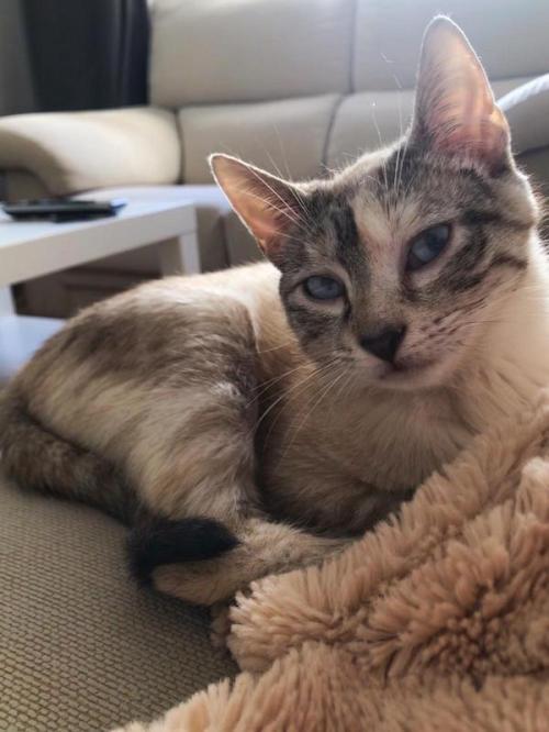 Cleo es una gatica muy buena y muy tranquila. Le encanta estar en contacto con la gente, en cuanto ve que te sientas en el sofá va contigo para ponerse encima. Juega un montón y es bastante curiosa. Te sentirás siempre acompañado porque también te sigue por el pasillo, es monísima! jajaajaja quén puede no sucumbir a sus encantos?