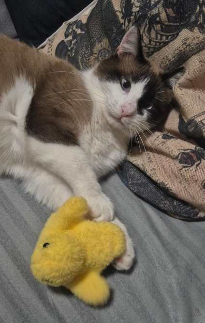 Derek estaba abandonado en una urbanización. Vimos que era el típico gato abandonado ya que es muy dócil y sociable. En cuanto tuvimos hueco lo recogimos. Su acogedor cuenta esto: es un gato bastante curioso, y activo. Le encanta jugar sobre todo acompañado. No le gusta mucho estar solo, aunque lo lleva bien. Es cariñoso, aunque le gusta manener su espacio e ir y venir cuando el quiere. Con las personas se lleva muy bien.