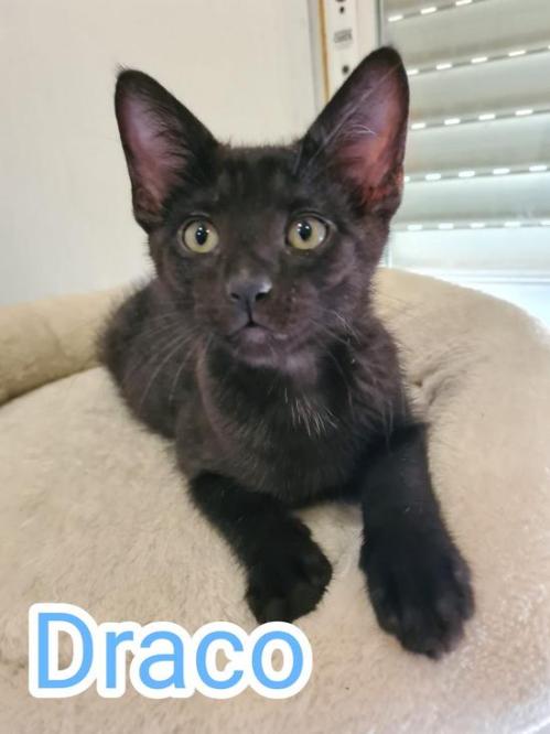 Draco es uno de los pequeños de la mami Ixchel, que nacieron ya a salvo en una casa. Todos son sociables, cariñosos, les encanta jugar y salen a recibirte cuando llegas a casa.