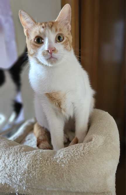 Elton es hermano de Kylie y de Stevie. Vinieron junto con Freddie (fallecido). Estaban en una zona muy peligrosa. Los recogimos con un mes. Nos costó sacarlos adelante, vinieron malicos, pero los tres tienen mucha fuerza, ganas de vivir y con los cuidados necesarios y cariño se recuperaron. Ahora son tres gatos alegres , sociables y divertidos. Elton es movido, cariñoso y tierno.