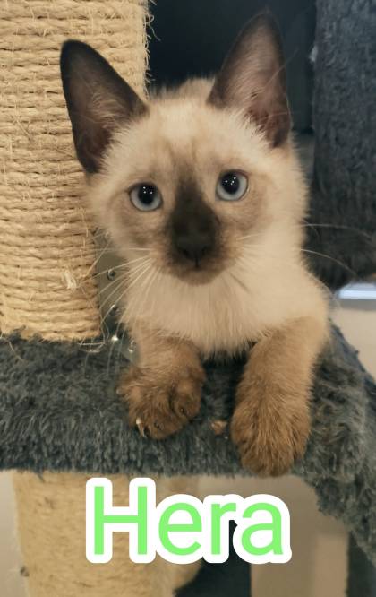 Hera es una de las pequeñas de la mami Ixchel, que nacieron ya a salvo en una casa. Todos son sociables, cariñosos, les encanta jugar y salen a recibirte cuando llegas a casa. Duermen contigo y les encanta que juegues con ellos con cordones y pelotas.