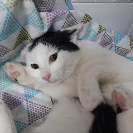 Hiru es otro gatico desgraciadamente abandonado. Sus acogedoras lo definen como hablador (habla por los codos), juguetón, le gustan las pelotas y los juguetes pequeños y dormir en la cama o en alguna silla. Le dan miedo las alturas y convive bien con un conejito. Le gusta mucho estar con las personas y es muy dulce.