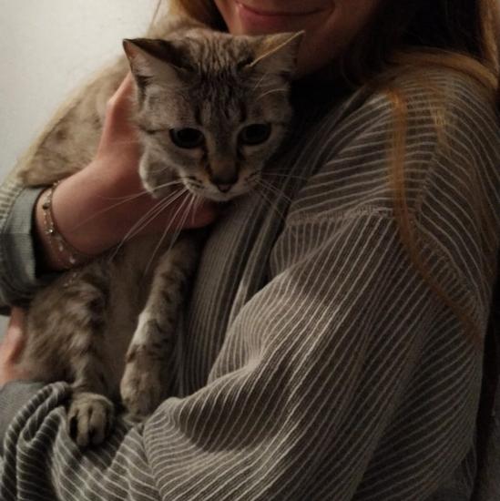 Kala es una gata a la que recogimos porque su familia no podía hacerse cargo de ella. Le costó unos días la adaptación en su casa de acogida, pero luego todo fue perfecto. Es una gata muy dócil, buena y cariñosa. También ha convivido con otros gatos (si estos son tranquilos). Ella es muy tranquila y sociable cuando coge confianza.