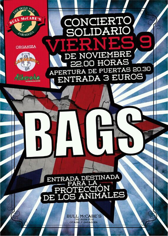 Concierto del grupo BAGS (pop rock inglés -versiones) a favor de las protectoras de animales Alborada y Zaragatos.