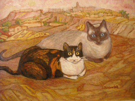 Luisa, la adoptante de uno de nuestro gaticos nos mandó este cuadro pintado por ella para venderlo en Zarapeluda. Gracias Luisa… No llegó a tiempo, por eso lo ponemos aquí. Si alguien lo quiere, lo que obtengamos por él irá destinado a cubrir parte de los gastos veterinarios para la recuperación de Celia.
