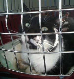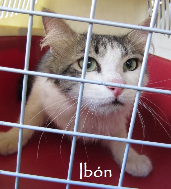 Ibón es un gato jovencito, tiene un añito más o menos. Sabemos que fue comprado de cachorro en un centro comercial y que lo dejaron en la calle hace unas semanas cuando su «dueño» se fue a vivir fuera de España. La calle no es lugar seguro para ningún gato, menos si es un gato casero, al que abandonan cerca de una carretera y hay un señor amenazando con matarle… En la foto lo veis un pelín asustado, va camino del vete nada más recogerlo de la calle.
