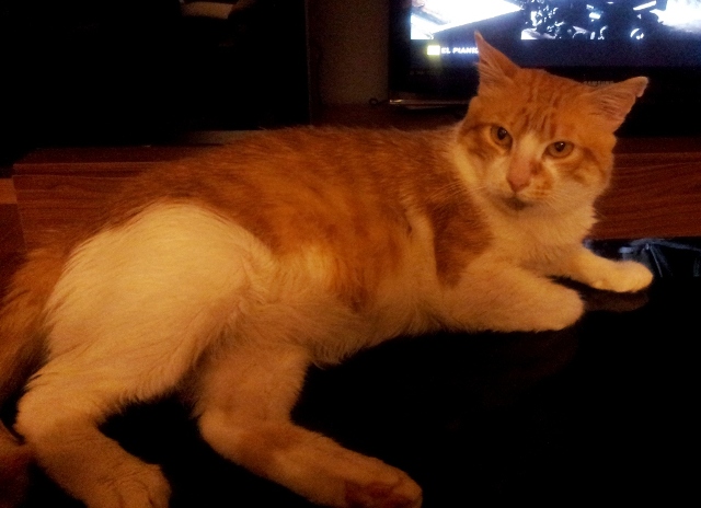 10-04-2013 Os contamos los progresos de estos preciosos gatitos, Telmo y Aisha. Telmo tiene la pata operada muy bien, falta darle tiempo para que osifique y se cure completamente. Debido a la hernia nos preocupaba que tuviera alguna cardiopatía, pero el otro día le hicieron un ecocardiograma y ha salido bien!. Como veis en el vídeo anda ya muy bien, corre, juega e incluso salta a la mesa ya… Aisha ya puede andar desde hace un par de días. Como tenía tres patas con roturas, ella va más despacio. De momento es un poco cuadro cuanda anda, porque entre los pelos pelados a medias y las patitas de atrás que no las puede flexionar bien parece un pavo real en vez de un gato… habrá que esperar para ver como evoluciona… poco a poco. Es posible que la flexión de las patas de atrás quede menor de lo normal. La anemia ya la ha superado, al menos los resultados de ayer han salido bien!. Es muy cariñosa y en cuanto le acaricias te da besitos. Son un par de soles los dos. La semana que viene, otra vez revisión… 8-04-2013 Camel es nuestro último gatico adoptado. Nos han mandado fotos de él en su nuevo hogar y mirad lo precioso y lo a gusto que se le ve… Nos dicen que se ha adaptado muy bien, que está muy juguetón y muy cariñoso. Se nota que está relajado y feliz!