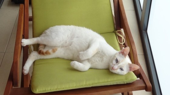 19-03-2013 Hace unos días recibimos fotos y noticias de Celia, la gatica que recogimos este verano muy malherida después de haber caído de un sexto piso. Nos cuenta Pedro, su adoptante, que está genial y que las patitas las lleva muy bien, que ya ni se acuerda… Nos encanta verla así, panza arriba, tan feliz y relajada!