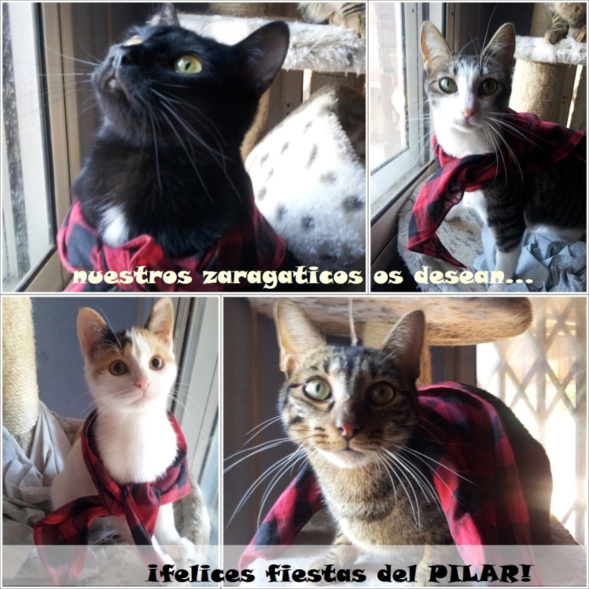 En la foto Robin, Mina, Bani y Odín posan guapísimos para la ocasión, ¡Para comérselos! ¡Felices fiestas del Pilar a todos!