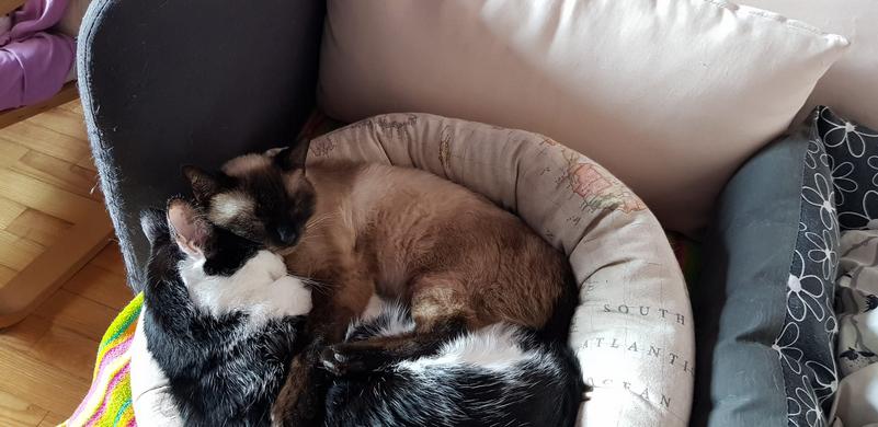 A Reina teníamos previsto recogerla de una zona donde corría peligro. Cuando lo hicimos ya le habían atacado otros gatos y llevaba casi una perforación ocular. La llevamos a urgencias y de milagro no perdió el ojico. Como veis se le ha quedado un poco más pequeño que el otro. Hace vida normal y ha resultado ser una gatica algo tímida pero muy dulce y juguetona.