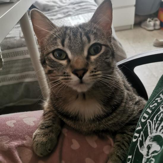 Shira, como la mayoría de nuestros Zaragatos fue abandonada. En su casa de acogida ha resultado ser una gata muy cariñosa, tranquila y buena. Aunque tiene sus momentos de juegos con su compi gatuno.